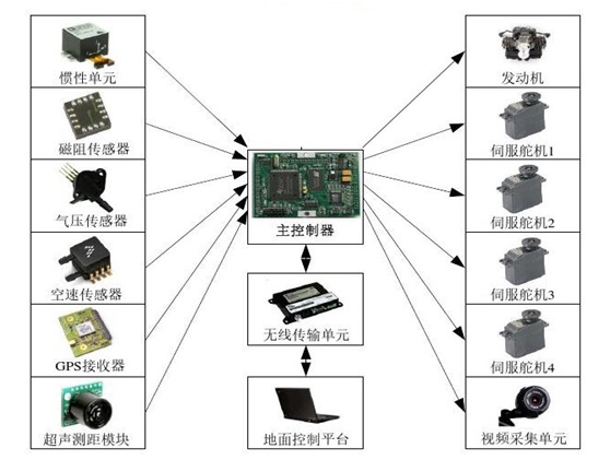 无人控制系统支持的外接设备,例如视频采集器、红外探测器、声波测距仪等。